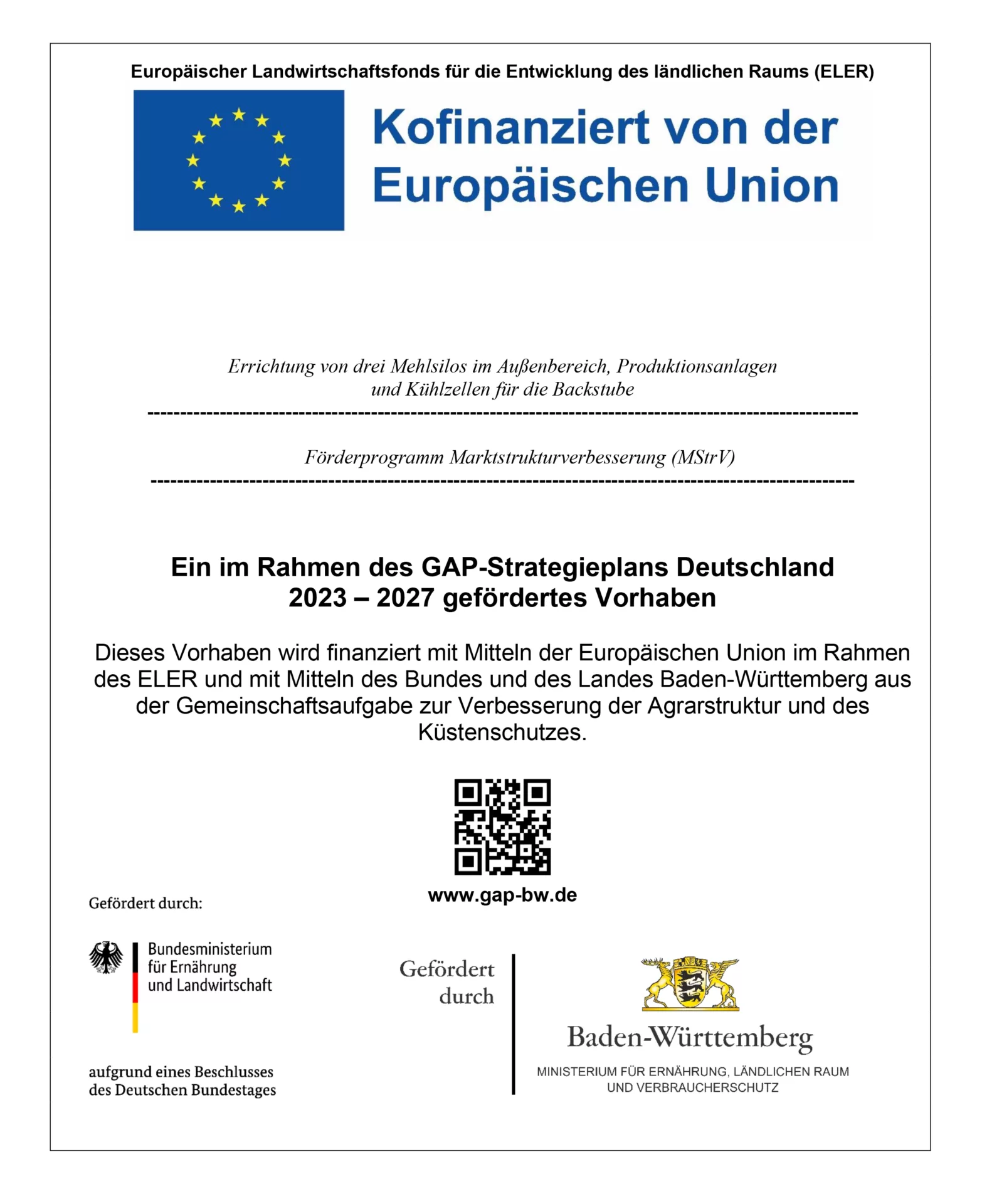 Dieses Vorhaben wird finanziert mit Mitteln der Europäischen Union im Rahmen des ELER und mit Mitteln des Bundes und des Landes Baden-Württemberg aus der Gemeinschaftsaufgabe zur Verbesserung der Agrarstruktur und des Küstenschutzes.